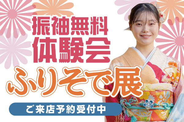 1月・2月「ふりそで展」 2025/12/19 イベント 旬の振袖が揃う「ふりそで展」開催中! たくさんの色柄のふりそでから、あなただけのコーディネートができます♪ レンタル振袖も一番多くの振袖が揃うときです、是非ご覧下さい!